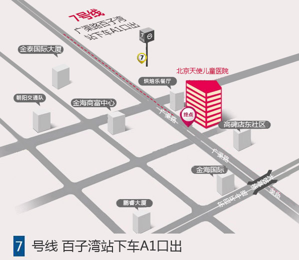 北京首都机场步行至首都机场2号航站楼站乘坐机场巴士7线, 在朝阳公园桥站下车步行至朝阳公园桥南站乘坐740内(或 657路), 在大郊亭桥南站下车步行至北京天使儿童医院。