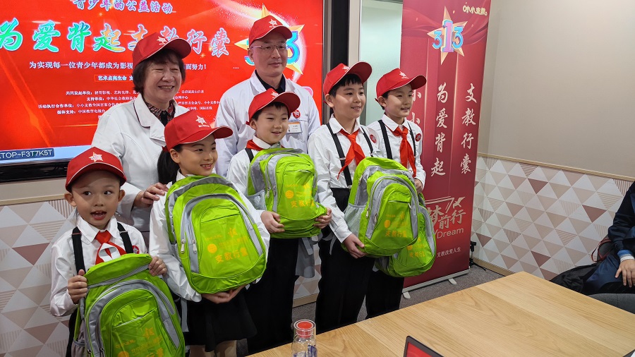 紧接着北京天使儿童医院为来自各地的孩子们发放了支教行囊,孩子们在得到礼物时都异常开心,在感谢之余也表示会将这份爱作为动力,努力学习,用优异的成绩报答公益者们!