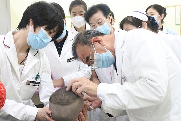 会后,刘振寰教授前往一楼中医科开展中医穴位针灸演示,埋植实操技术指导工作,指导中医师把握中医疗法理念、临床操作与运用,同时对北京天使儿童医院中医科专业的技术水平、绿色安全的治疗环境、先进齐全的康复设备予以高度的认可与称赞。