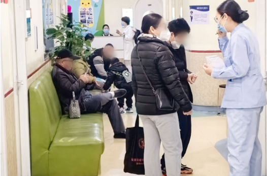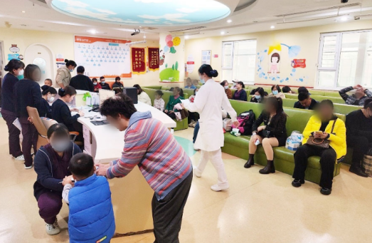 今天一大早就有很多家长前来排队,大厅里或坐或站的挤满了一脸焦虑的家长,他们翘首等待医生呼叫自家孩子的名字,躁动的身影出现在院内的每一个角落。焦虑和友爱在同一个空间里互相交织,映照出人世间最真实的生活图景。